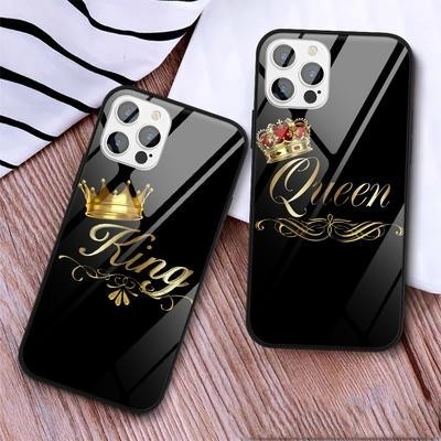 Пара Королева Король Корона Бриллиант Закаленное стекло Чехол для телефона для iPhone 13 12 11 SE 20